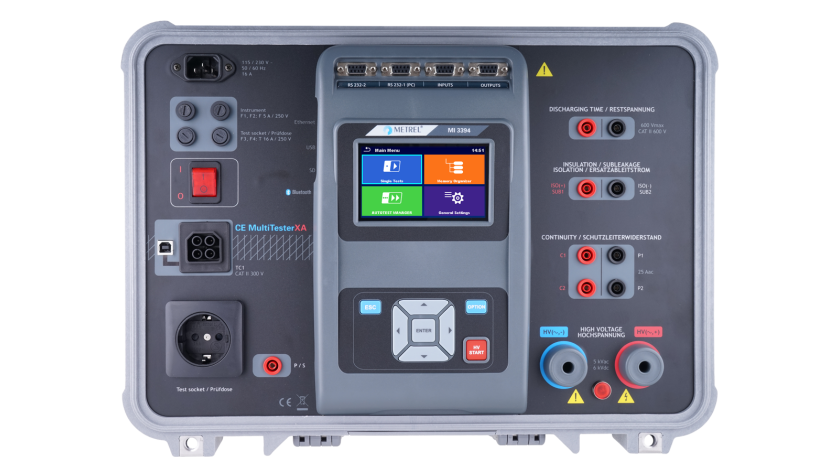 Metrel MI 3394 CE MultiTesterXA, 5.1 kV AC / 6 kV DC HiPot testleri, 25A süreklilik ölçümü ve kapsamlı kaçak akım analizleri ile makine ve pano üretiminde CE uygunluk testlerini gerçekleştirmek için geliştirilmiş profesyonel test sistemidir.