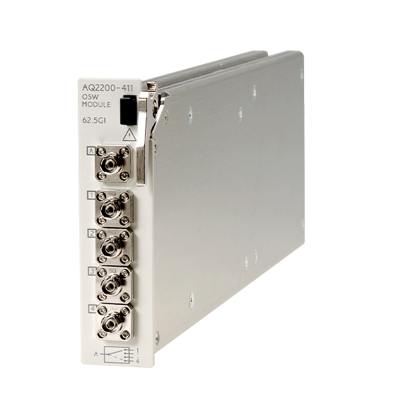 The AQ2200-411 OSW module is a space-saving optical switch featuring low insertion loss and superior switching reproducibility, and allows selection of 1 x 4 or 1 x 8 port configuration according to the application.
